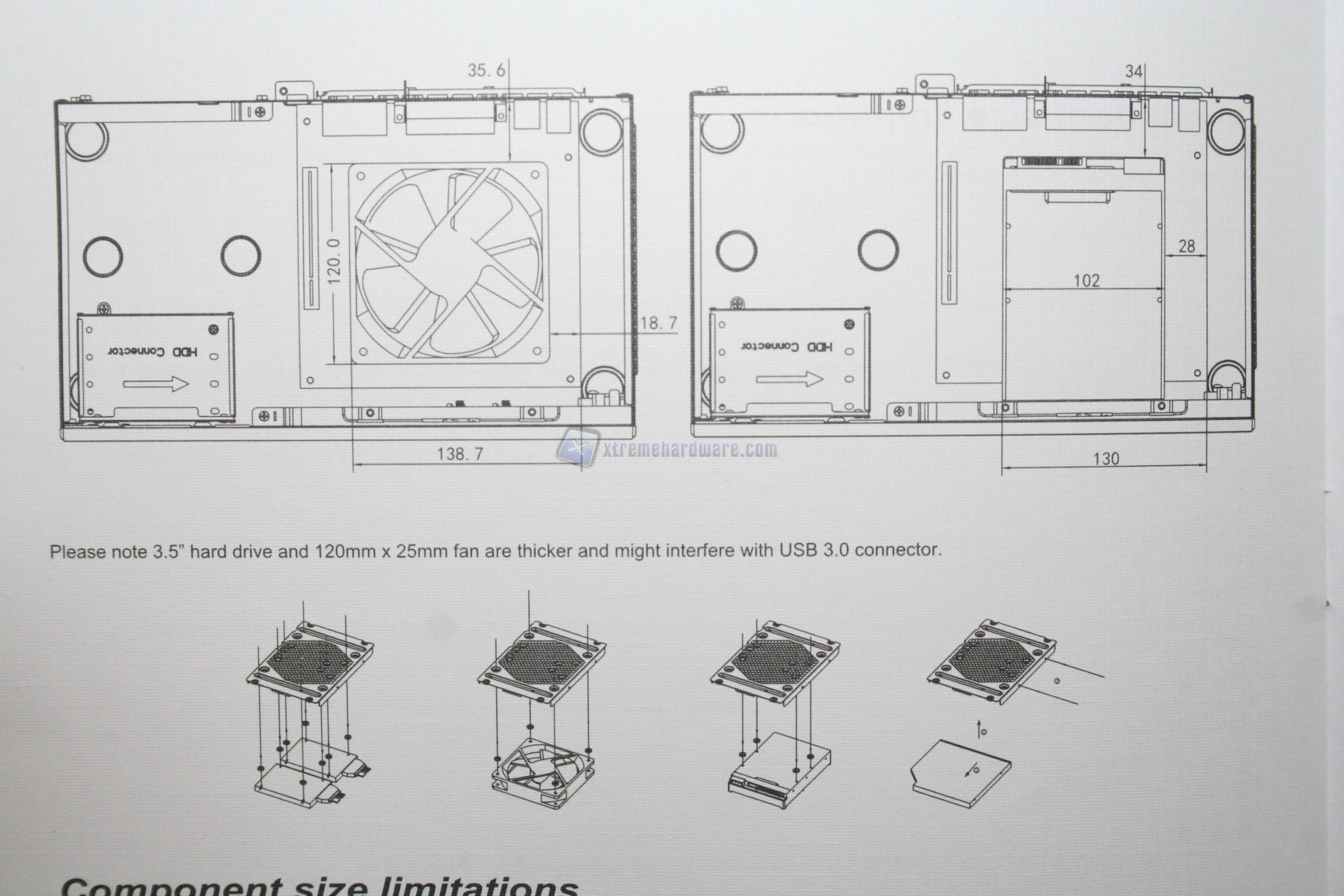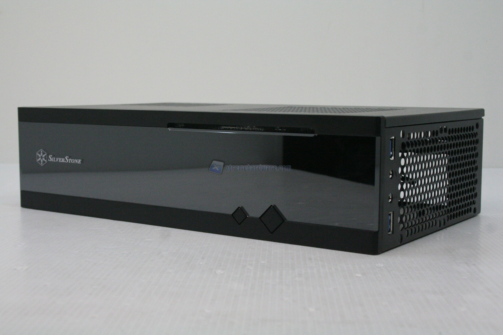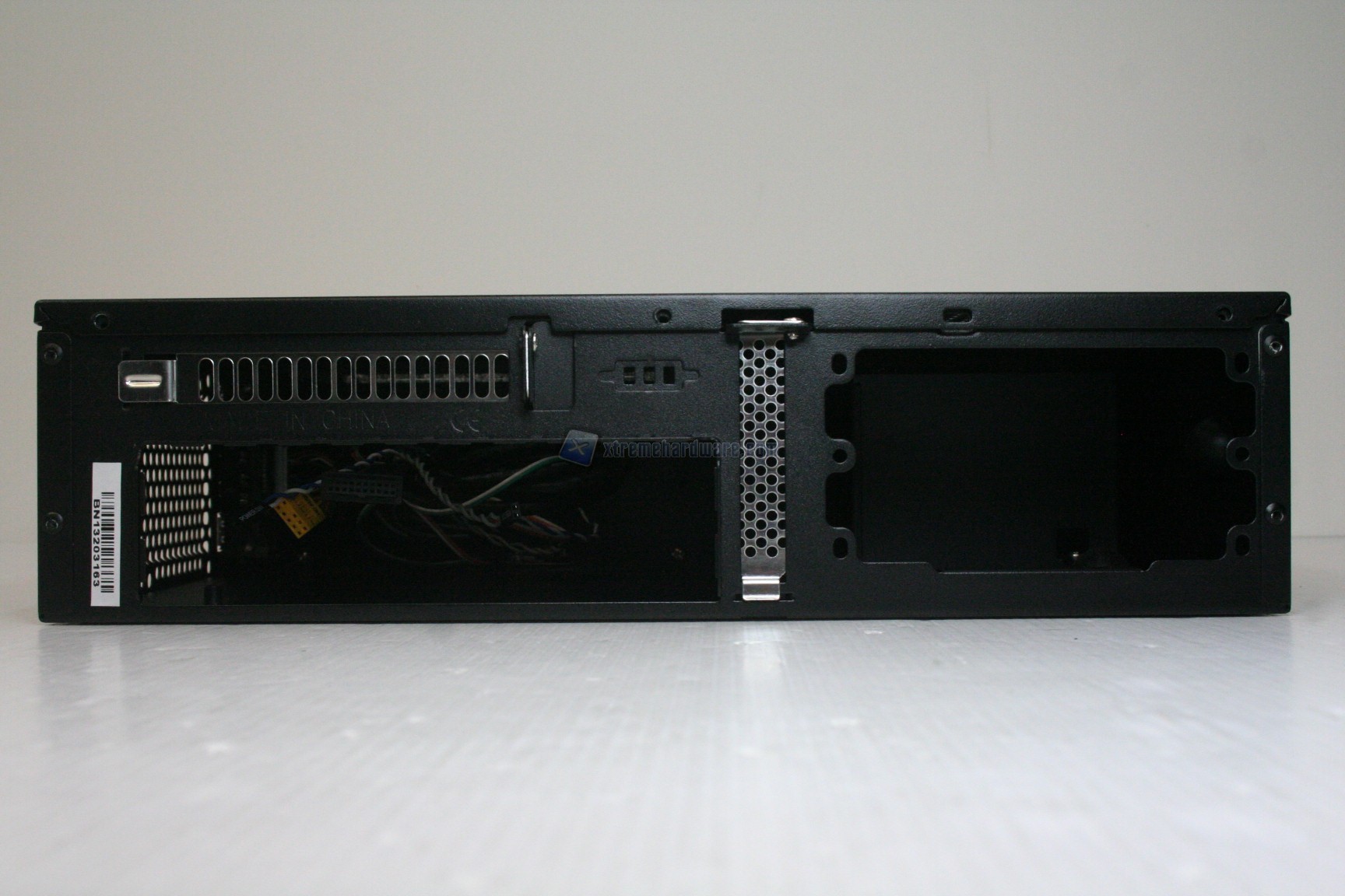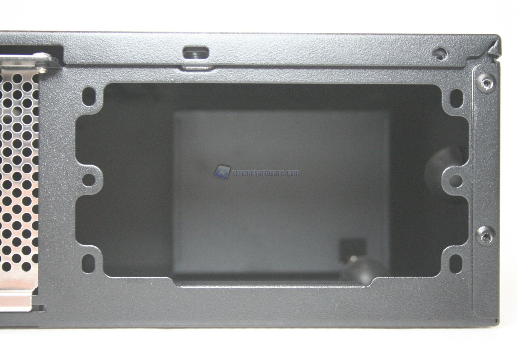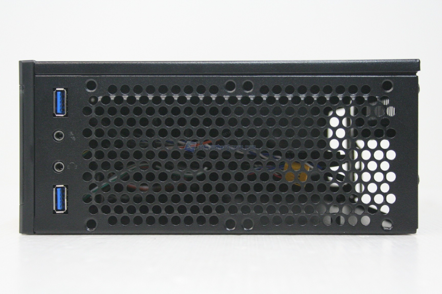 Lateralmente, nella parte sinistra, non troviamo nulla, ma nella parte destra sono presenti gli ingressi I/O, con due connettori USB 3.0 ben spaziati. Oltre a questo sono presenti delle griglie di ventilazione, con predisposizione per due ventole da 80mm. Ottima notizia, questi significa che sarà possibile ventilare lateralmente le sezioni di alimentazione, e quindi avere in teoria anche un sistema overcloccato. Posteriormente, procedendo da destra a sinistra troviamo: una predisposizione per un alimentatore con form factor SFX, uno slot di espansione PCI Low Profile, una predisposizione per un connettore ausiliario superiore, l’apertura orizzontale per la scheda madre ed infine un altro slot di ventilazione PCI superiore, potenzialmente moddabile (analizzeremo in breve questo fattore nel capitolo dell’assemblaggio). Nella parte inferiore non c’è nulla di sostanziale, come in quella superiore, che però presenta due aperture di ventilazione, in prossimità della CPU e dell’alimentatore, ovvero le due unità più problematiche sotto il punto di vista termico. I quattro supporti alla base presentano circa 1 cm di altezza, quindi un discreto quantitativo, anche se comunque non sono presenti aperture inferiori. Sarà quindi possibile posizionare il cabinet anche su una moquette o un tappeto.